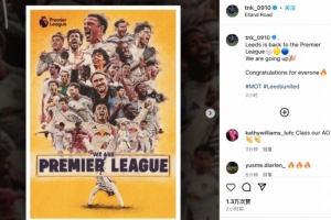 利兹联中场、日本国脚田中碧今日更新社媒,晒出球队升英超的海报,并配文写道:“利兹联重回英超联赛,我们更上一个台阶。祝贺这里的每一个人。”
