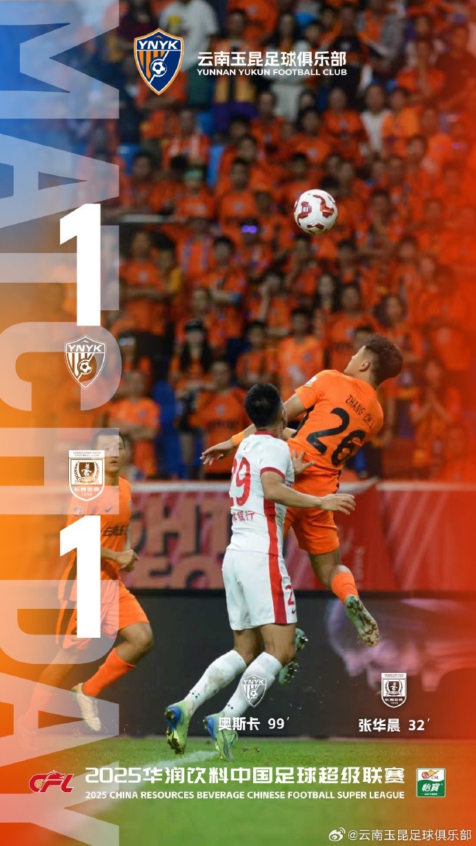 2025华润饮料中超联赛第23轮,云南玉昆与对手1比1握手言和。上半场对手通过直接任意球率先破门。比赛进入补时阶段,内内制造禁区犯规赢得点球,奥斯卡操刀命中压哨追平。