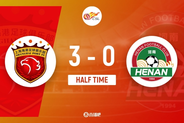 上半场比赛结束,上海海港主场暂时3-0领先河南。